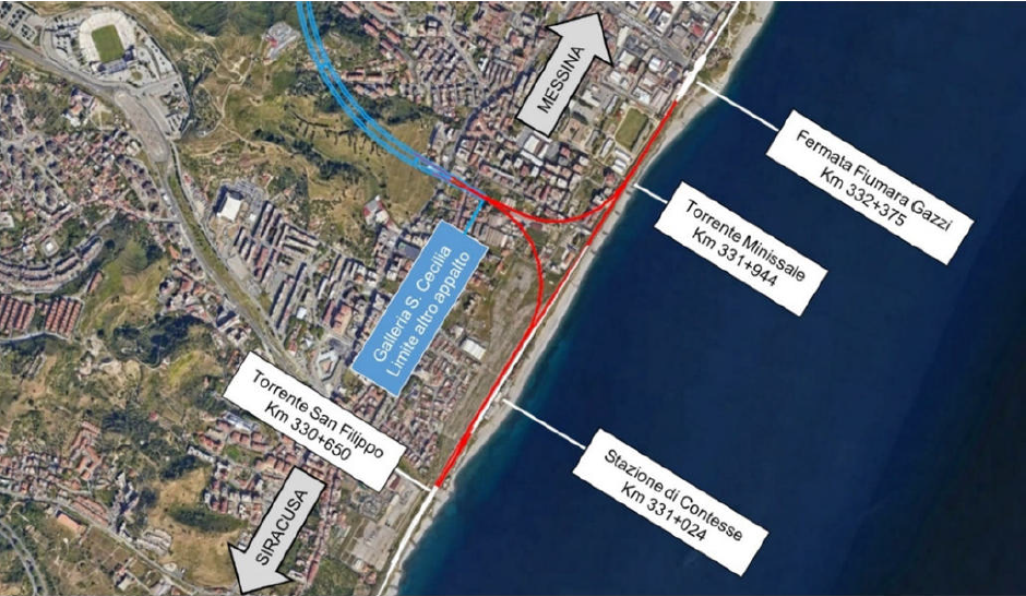 Le avremo entrambe, ma saranno due stazioni minori, la stazione principale rimarrà Messina Centrale2 INQUADRAMENTO DELL’OPERA2.1 Descrizione delle opere in progetto2.1.1 Il quadro delle opere e degli interventi in progettoIl progetto di connessione al ponte sullo stretto di Messina, per la sponda siciliana, si sviluppa interamente sul versante ionico del territorio di Messina, dove il tracciato, proveniente dal ponte sullo stretto ed in particolare dalla Galleria Santa Cecilia (a cura di altro appalto), si innesta sulla linea esistente Siracusa – Messina C.le tra la stazione di Contesse (km 331+024) e la fermata di Fiumara Gazzi (km 332+375).