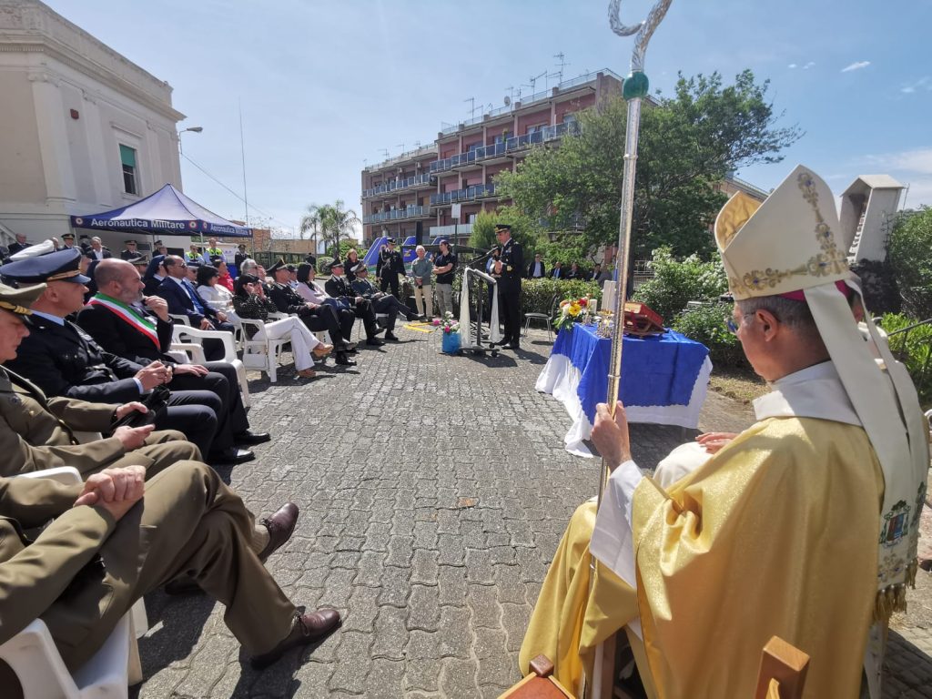 A seguire, la Santa Messa officiata dal Vescovo Ausiliare di Messina Monsignor Cesare Di Pietro, assistito dal Cappellano Militare dell’AM di Sigonella Don Paolo Solidoro.