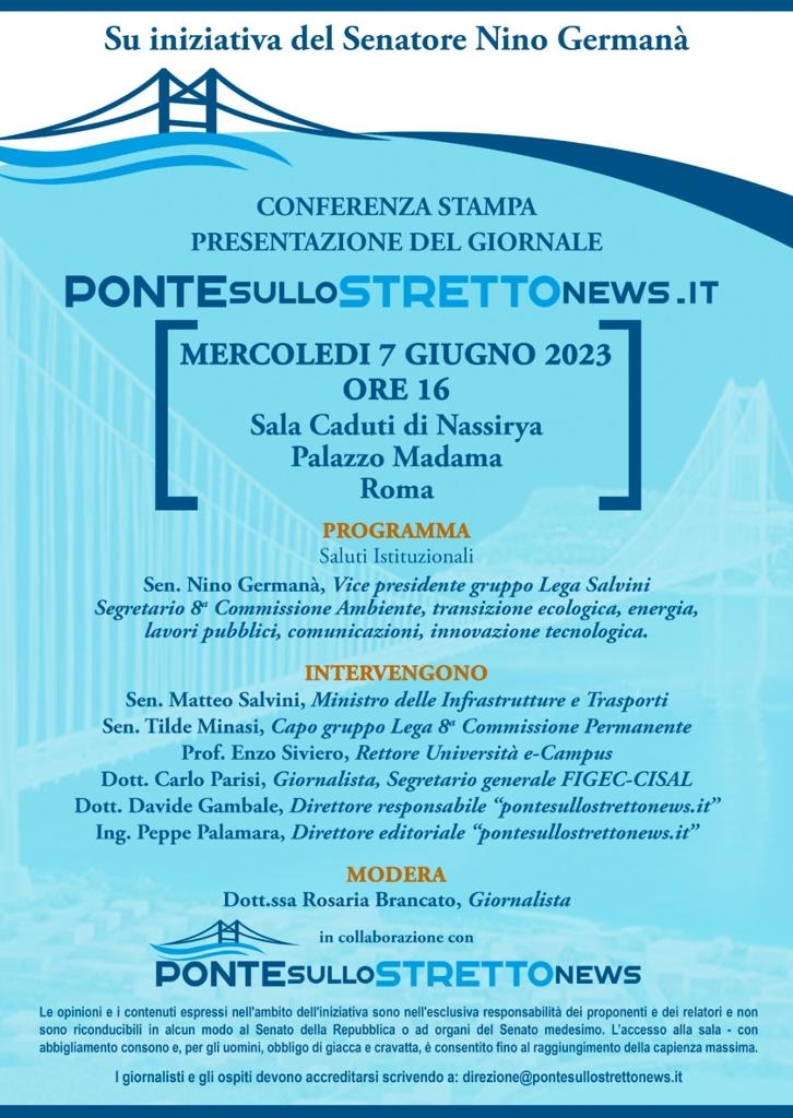 La conferenza stampa sarà trasmessa in diretta sui canali media del Senato della Repubblica. Le richieste di accredito per la conferenza stampa possono essere inviate a: direzione@pontesullostrettonews.it