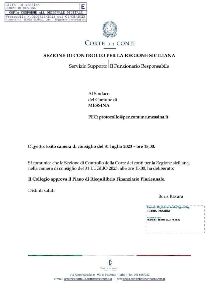 La Corte ha dato l’ok al Piano di Riequilibrio Finanziario Pluriennale del Comune di Messina.
