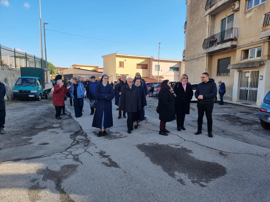 Un saluto anche da una suora dell’ordine del Bell’Amore che ha ricordato di essere cresciuta con lui, di Lorenzo Spadaro, fratello del compianto Pippo, che ha ricordato gli anni vissuti alla guida del gruppo giovanile della parrocchia, sotto la supervisione di padre Luigi.