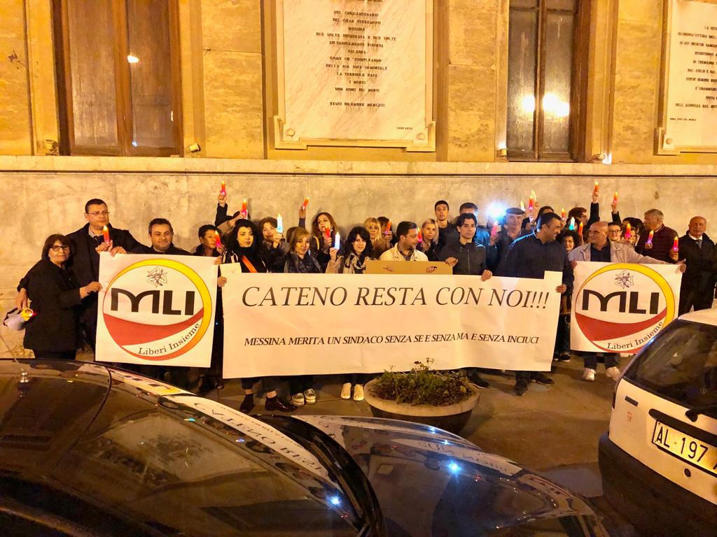 Un corteo di simpatizzanti e sostenitori del sindaco Cateno De Luca è sceso ieri in piazza per dare luogo a una sorta di protesta contro il primo cittadino, vale a dire indire una fiaccolata che possa “riaccendere” in De Luca la volontà di portare concretamente a Messina il suo modello gestionale che, a detta dei suoi sostenitori, è improntato soprattutto nell’interesse della cosa pubblica. La manifestazione, dall’eloquente titolo “Cateno resta con noi”, è stata organizzata dal Movimento Liberi Insieme (MLI) e si è aperta alle 20 e 30 in Piazza Unione Europea, nella scalinata antistante l’entrata principale di Palazzo Zanca, con un minuto di raccoglimento in ricordo della strage di Capaci del 23 maggio 1992, giorno in cui venne ucciso il magistrato antimafia Giovanni Falcone, la moglie e gli uomini di scorta. Successivamente si è dato il via ufficiale alla manifestazione con l’esposizione dello striscione “Cateno resta con noi”.