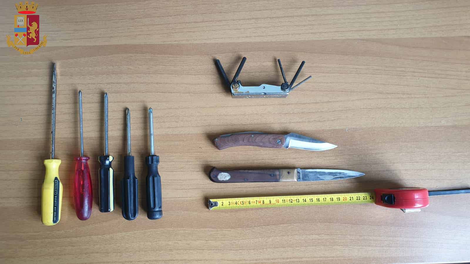 Grazie alle indicazioni fornite dalle tre vittime e alla visione delle immagini delle telecamere di videosorveglianza, i poliziotti sopraggiunti sono riusciti a identificare rapidamente i fuggitivi, rintracciando Cavallaro in un’altra zona della città. A seguito della perquisizione personale, gli operatori delle Volanti hanno rinvenuto, addosso al sospettato, la chiave dell’autovettura, che coincideva con quella indicata dai testimoni, il tutto confermato dalle tracce presenti sulla carrozzeria, consistenti in ammaccature e striature sul paraurti. All’interno della macchina, poi, sono stati trovati due coltelli, cinque cacciaviti e un kit di chiavi esagonali, immediatamente posti sotto sequestro.