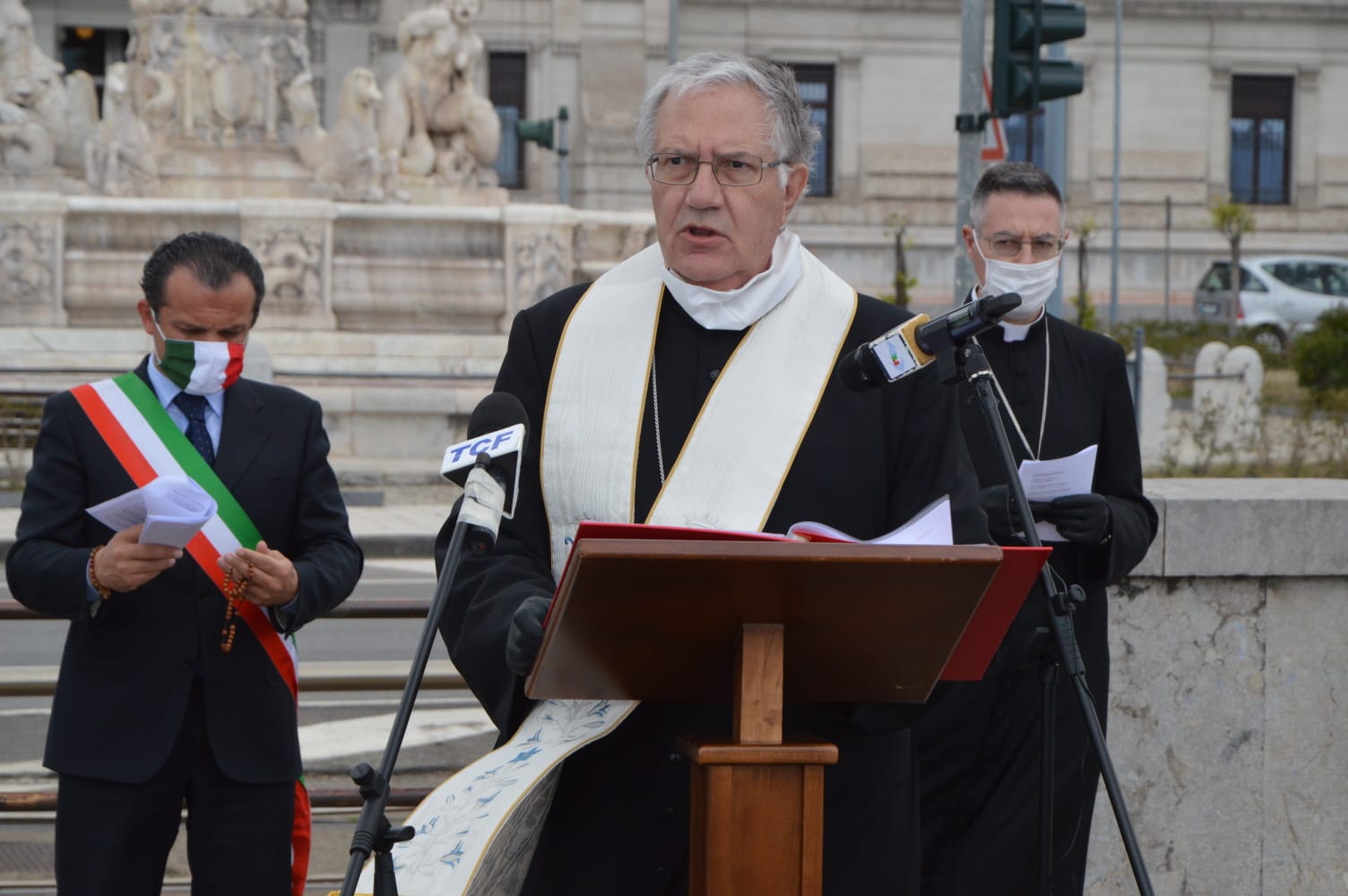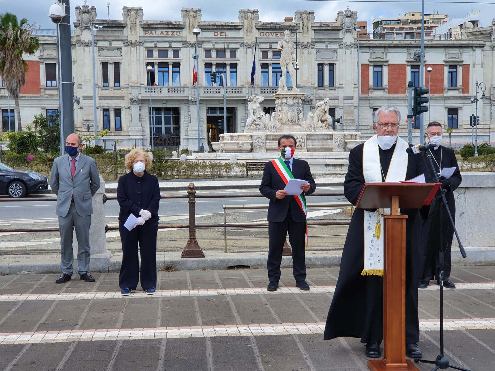 Dopo la lettura del brano del Vangelo, l’arcivescovo ha condiviso una breve riflessione, alla quale ha fatto seguito l’atto di affidamento, compiuto dal sindaco, e un pensiero augurale da parte del prefetto. La benedizione dell’arcivescovo, il canto del Regina coeli e il suono delle sirene delle imbarcazioni dello Stretto hanno concluso il momento di preghiera.
