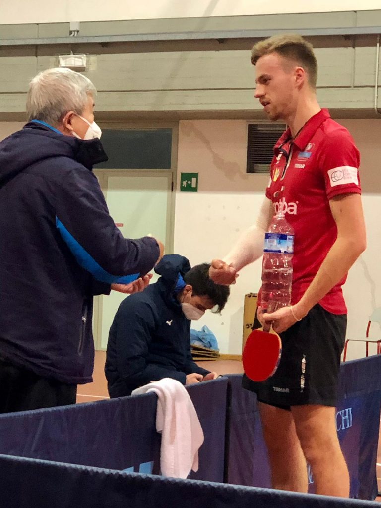 Il pongista bresciano è stato autore di un grande avvio di terza frazione (5-0) e si è portato a condurre sul 2-1 grazie all’11-4.