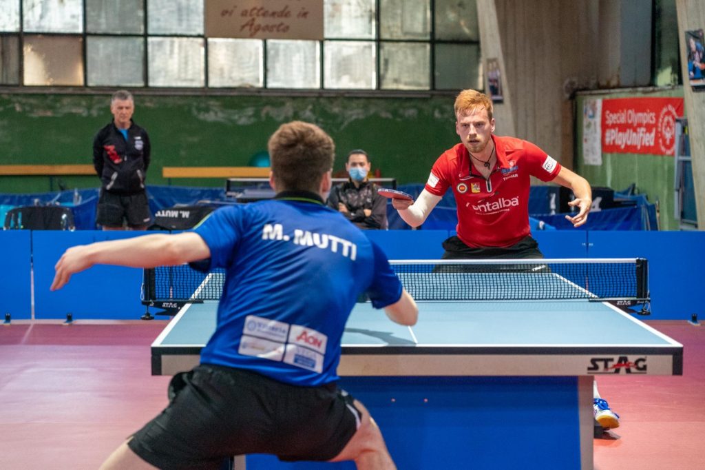 Marco Rech Daldosso ha sconfitto 3-0 Marcello Cicchitti che nel primo set è stato inizialmente avanti (4-2, 5-4). Equilibrio fino al 5-5, poi il portacolori della Top Spin è riuscito a far suo il parziale per 11-7. Nella seconda frazione Rech ha tenuto a distanza Cicchitti dall’avvio (6-2), prevalendo per 11-5. Il terzo si è invece chiuso 11-0. Accesissimo il duello tra Landrieu e Mutti, con il transalpino vittorioso soltanto alla “bella”. Sul 5-5 del primo parziale, il milanese è andato via con quattro punti consecutivi e ha poi trasformato il secondo set-point per l’11-8. Sotto sul 3-5 e sul 5-7, Landrieu ha rimontato nella seconda frazione, operando il sorpasso (8-7) e pareggiando i conti grazie al successo per 11-8.