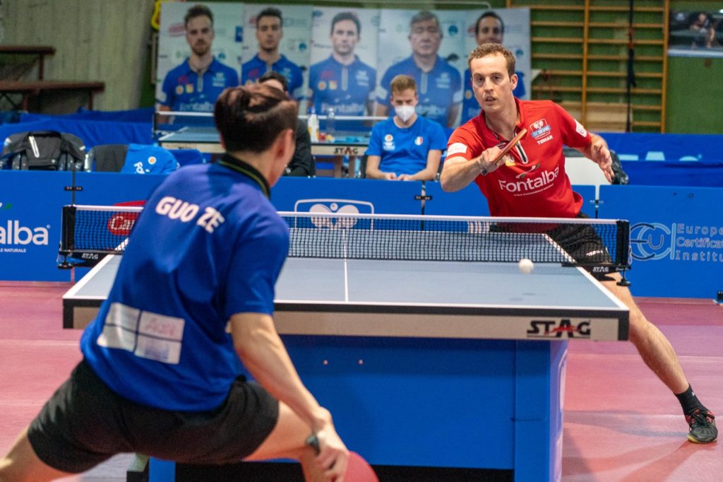 Andrea Landrieu, nel singolare d’apertura, si è imposto per 3-0 ai danni di Guo Ze. Incamerato senza problemi (11-2) il primo set, il francese ha sempre controllato il gioco anche nei parziali seguenti. Nella seconda frazione, sul 3-2, si è registrato l’allungo di Landrieu, proseguito fino a raggiungere l’11-6. Il terzo set si è aperto con un immediato break (5-0) del transalpino che ha poi sfruttato il primo match-point a sua disposizione: 11-4.