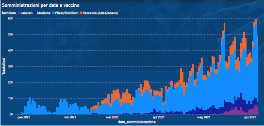 Crescono esponenzialmente le somministrazioni. Dopo un inizio altalenante, dovuto ai ritardi strutturali nella consegna delle prime dosi da parte delle case farmaceutiche, tra fine febbraio e inizio marzo si è registrata una crescita esponenziale della somministrazione dei vaccini, che ha raggiunto il suo culmine qualche giorno fa, in concomitanza con l’apertura della campagna vaccinale ai più giovani.