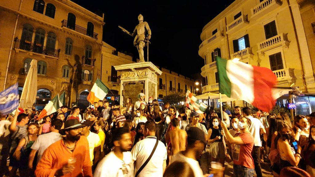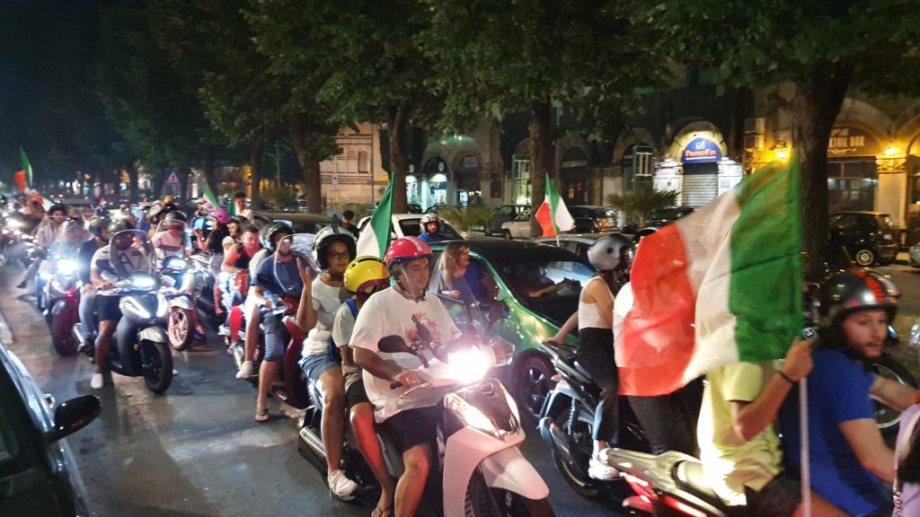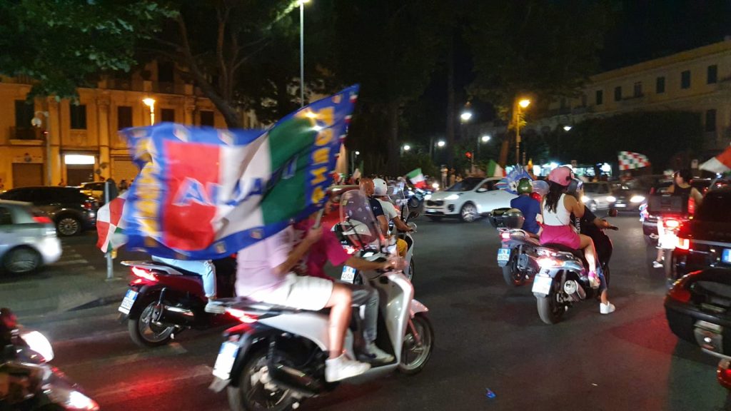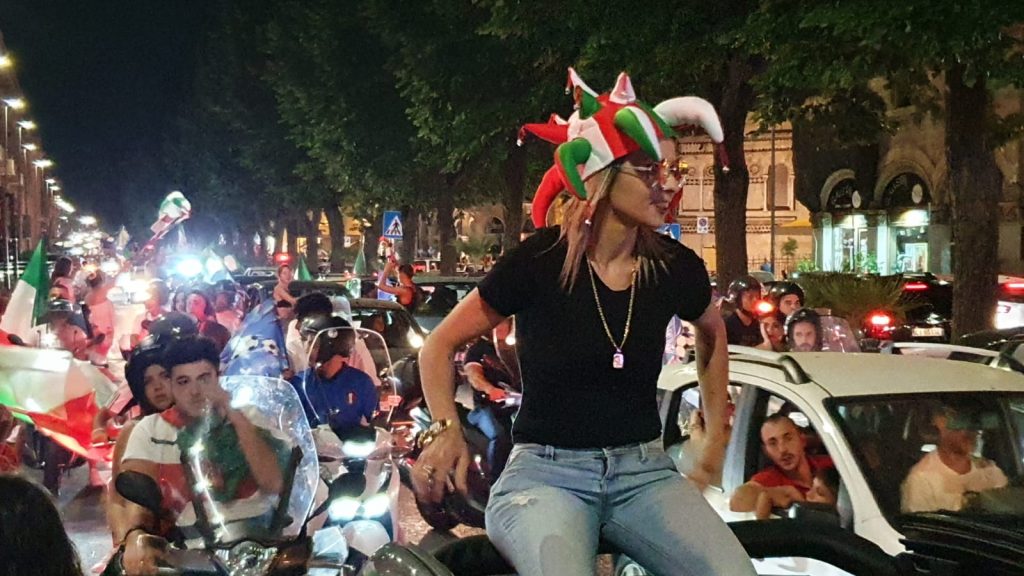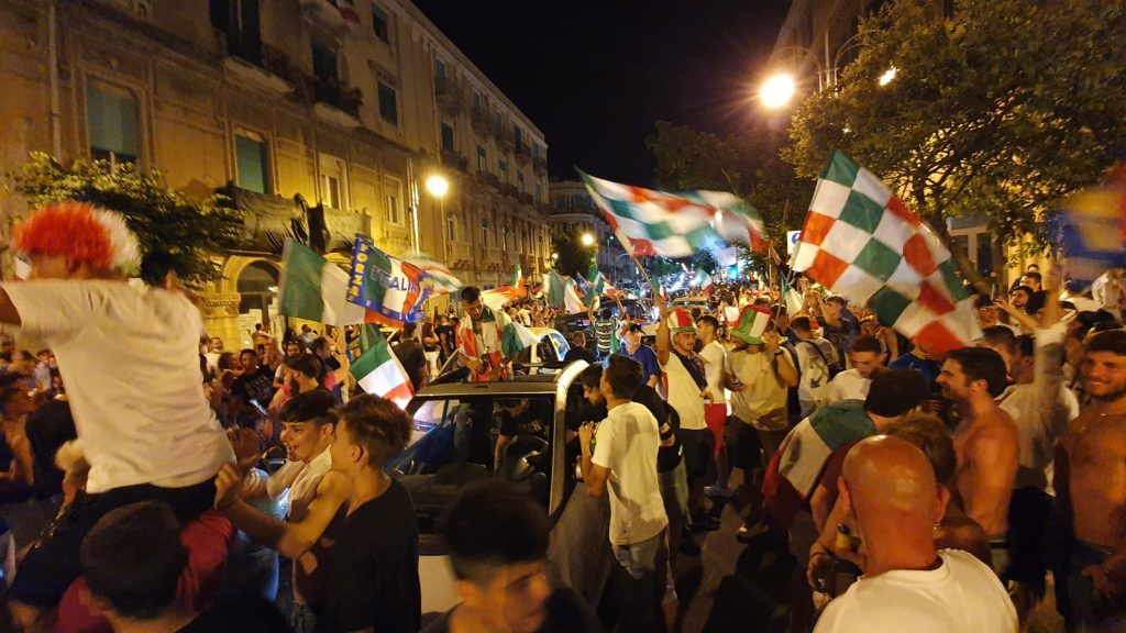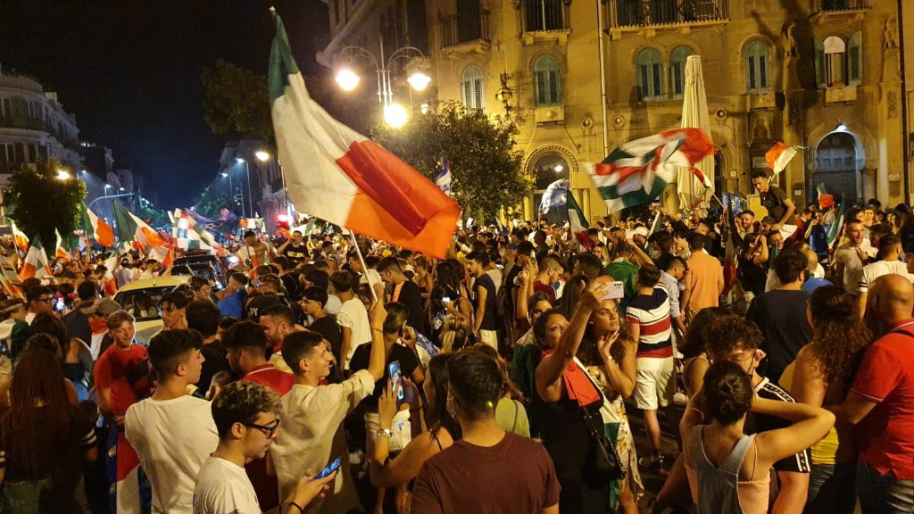 L’Italia vince l’Europeo e i messinesi rimasti in città si riversano per le strade a festeggiare. Oltre al successo sportivo si è celebrato il riscatto di una intera nazione.