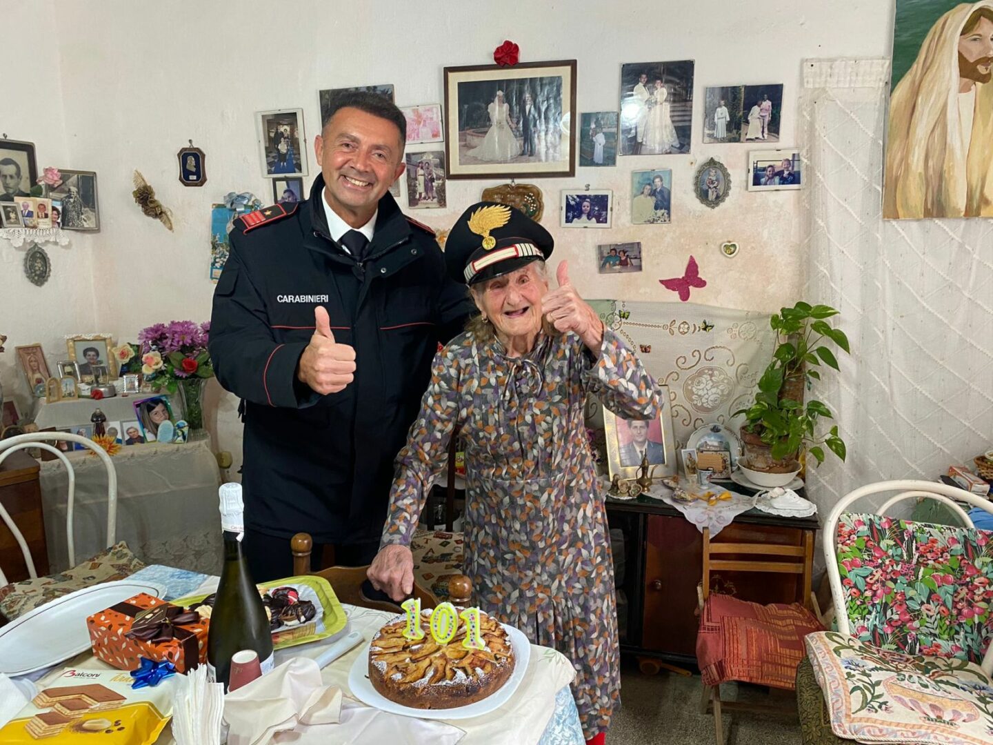 FAVIGNANA (TRAPANI) (ITALPRESS) – I Carabinieri della Stazione di Favignana hanno trascorso un pò di tempo a casa di Rosa Giangrasso, in occasione del suo 101esimo compleanno. Zia Rosina, la più anziana tra gli abitanti delle Egadi, riceve spesso la visita dei Carabinieri dell’isola che, sapendo che vive da sola vanno a trovarla per assicurarsi che stia bene chiedendo se le serve assistenza. La donna, ieri, in un giorno così importante, era rimasta da sola in quanto per le avverse condizioni meteo sono stati interrotti i collegamenti marittimi e i parenti non avevano potuto raggiungere l’isola per fare festa con lei.