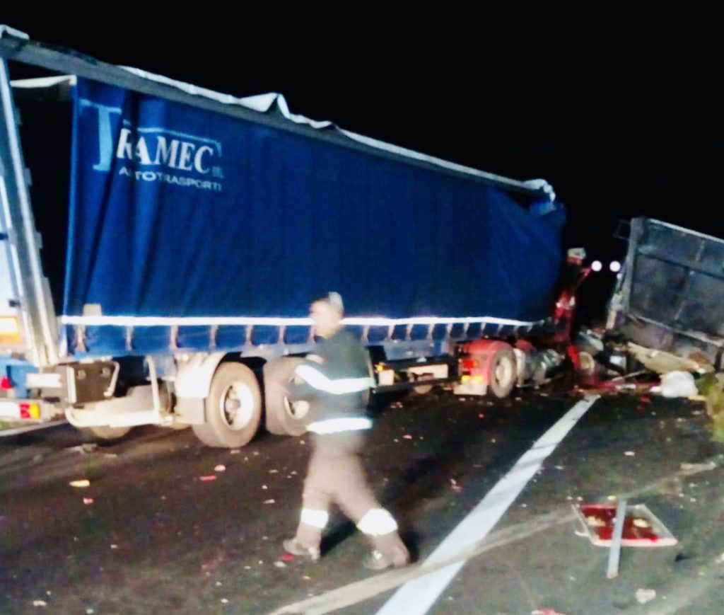 Mentre sulla A18 un autoarticolato si è ribaltato nella notte (foto sopra)