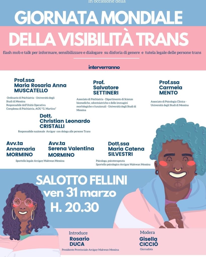 Il 31 Marzo prossimo si svolgerà l’evento dedicato alla Giornata Mondiale della visibilità trans organizzato a Messina da Arcigay “Makwan” al Salotto Fellini.