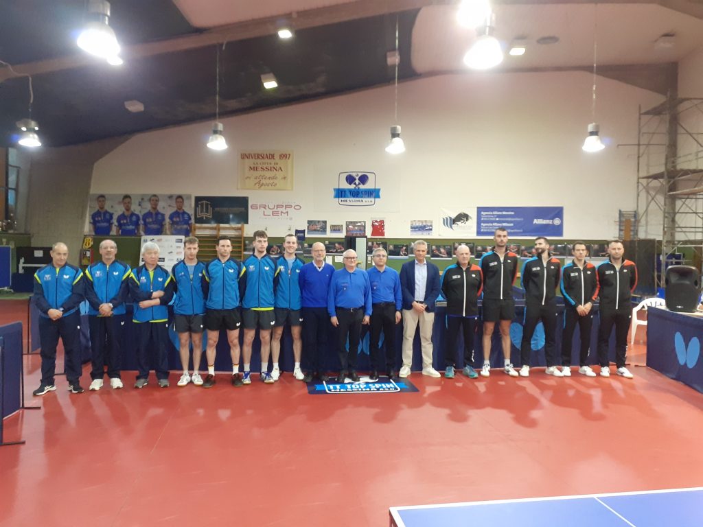 Top Spin Messina WatchesTogether-Apuania Carrara 2-3, tutto rimandato all’ultimo singolare. Di fronte Leonardo Mutti e Mihai Bobocica, i primi due atleti del ranking italiano. Buon avvio (6-4) del beniamino di casa che ha condotto fino al 9-8, poi Bobocica si è preso il set con tre punti di fila. Assai vibrante il secondo parziale che ha visto L. Mutti scattare sul 4-1 e tenere un discreto margine fino al 7-4 nei confronti del rivale che lo ha però riagganciato e quindi superato. Sul 9-10 il mantovano ha cancellato una pesantissima palla set a Bobocica e sulle ali dell’entusiasmo ha prevalso in rimonta 12-10. Clamoroso epilogo del terzo set. L. Mutti ha inizialmente dilagato (9-3), ma non ha chiuso il discorso e punto dopo punto Bobocica è ritornato sotto fino al 9-8. Ottenuti comunque due set-point (10-8), in entrambi i casi L. Mutti non ha sfruttato la chance, che gli si è ripresentata per la terza volta sull’11-10, senza concretizzarla. Viceversa Bobocica è passato al secondo set-point a sua disposizione per 14-12, andando sul 2-1. L’inerzia è cambiata e Bobocica ha tagliato il definitivo traguardo in virtù del successivo 11-6, regalando ai suoi la vittoria per 4-2 nella finale d’andata. Al termine dell’incontro spazio all’omaggio a João Monteiro e allo stesso Leonardo Mutti: per entrambi era l’ultima davanti ai propri calorosi tifosi.