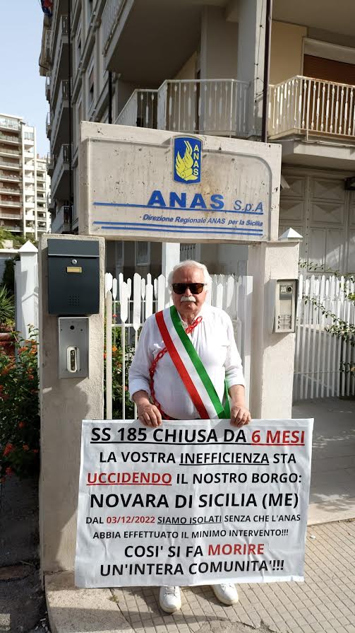 Il Sindaco di Novara di Sicilia, Girolamo Bertolami, da questa mattina è incatenato a Palermo, presso la Struttura Territoriale della Sicilia – A.N.A.S. di Palermo, in Via A. De Gasperi n° 247. Obiettivo: porre l’attenzione sulla disastrosa condizione della Strada Statale 185, che attraversa il paese di Novara di Sicilia, che si è franata sia nel versante nord che nel versante sud, a seguito dell’alluvione del 03 dicembre 2022, rendendo nei fatti il comune