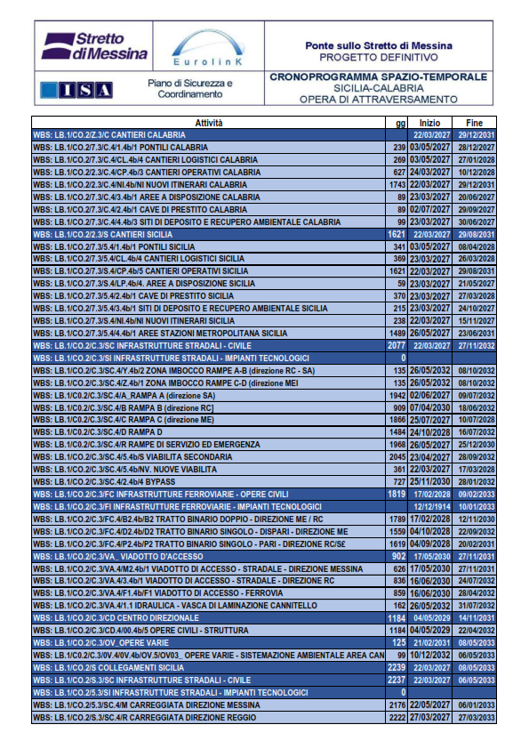 IERI QUI ci siamo dunque limitati ad elaborare il Cronoprogramma delle Attività Anticipate, ovvero la tavola GER0327_ver. D pubblicata il 20/04/2024. Oggi abbiamo fatto lo stesso con la tavola GE0042 (Piano di sicurezza e coordinamento del PD2011) questa pubblicata il 20/06/2011.