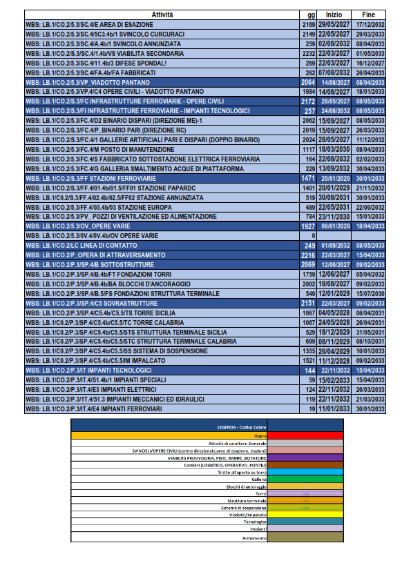 Di seguito gli screen del dettaglio delle attività del cronoprogramma con la relativa legenda.