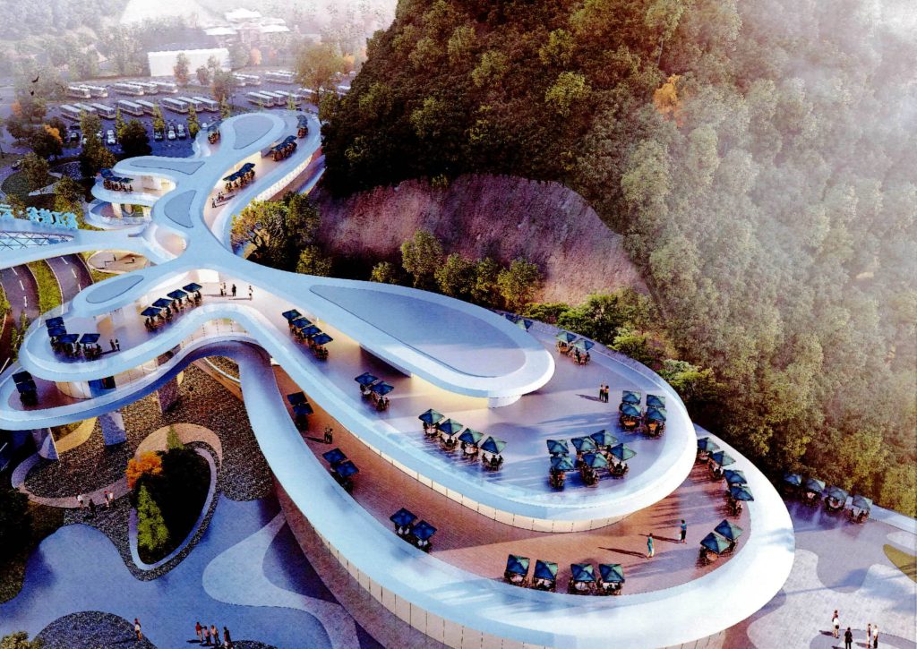 🔹 Il sito del ponte del canyon di Huajiang ospiterà anche un enorme centro turistico in stile Zaha Hadid, che mostrerà lo sviluppo del ponte sospeso e l’antica storia del canyon e della sua popolazione.