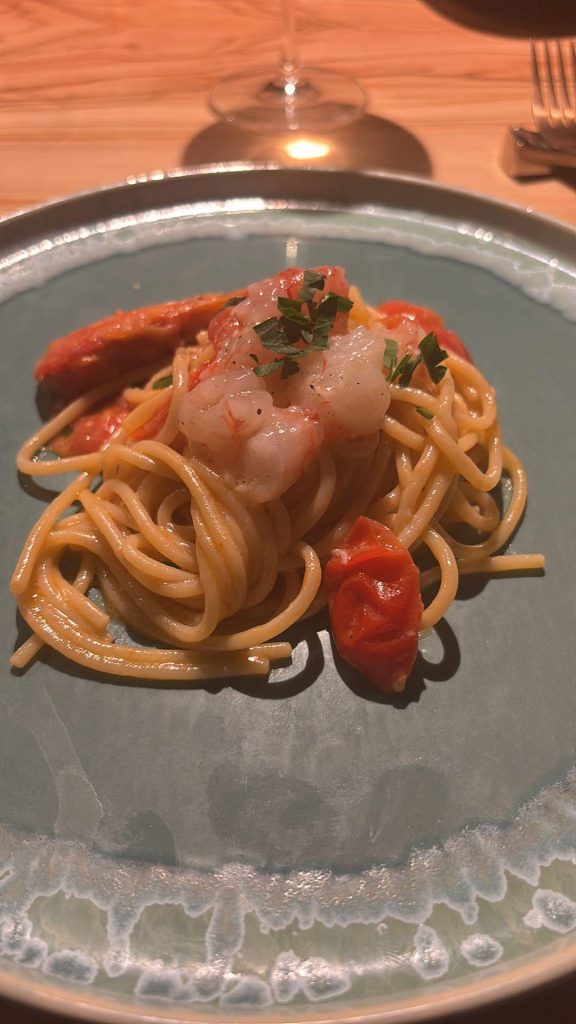 A corredo del post la foto di un invitante piatto di spaghetti ai gamberi.