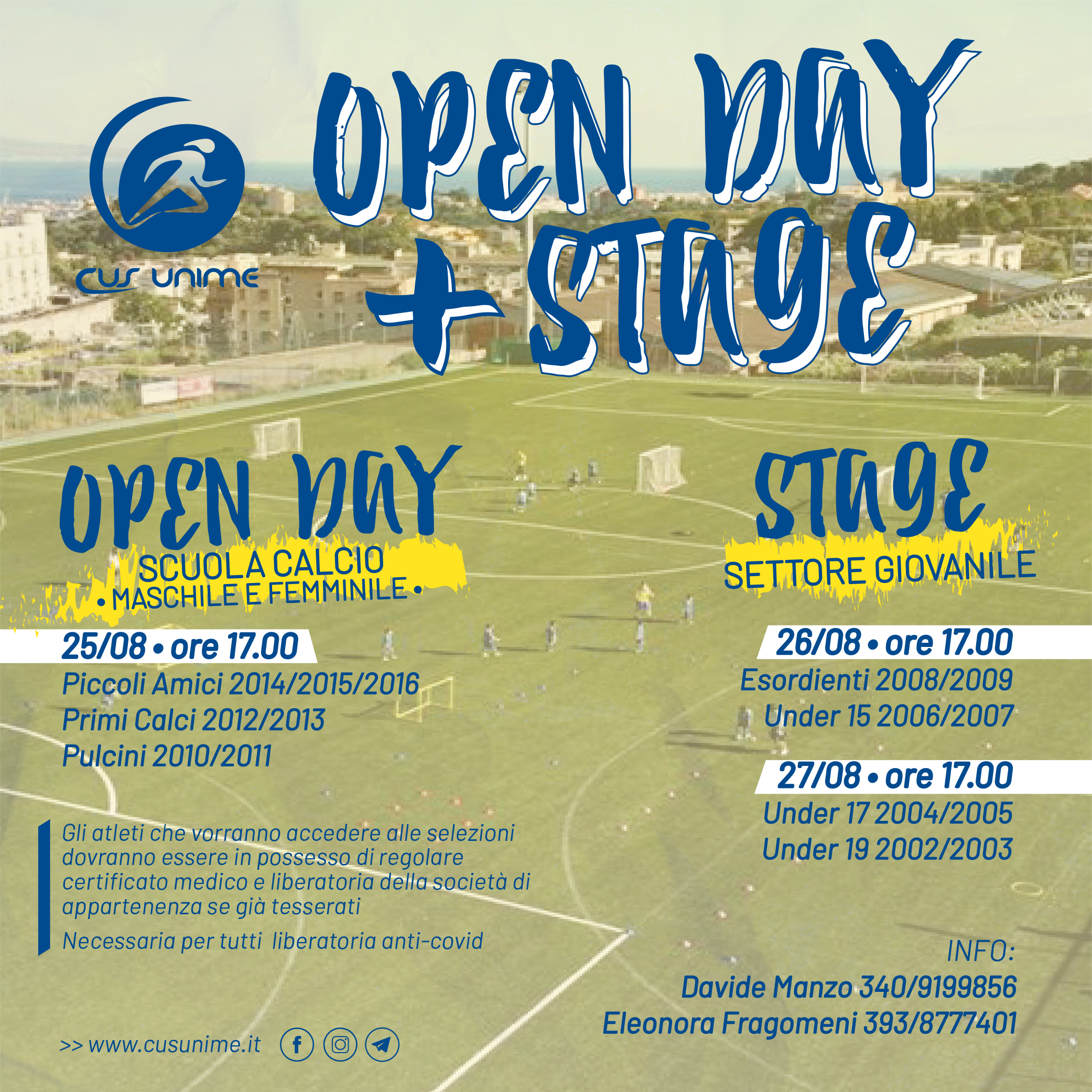 Tre giorni dedicati a scuola calcio e settore giovanile Il Cus Unime comunica che martedì 25, mercoledì 26 e giovedì 27 agosto al campo sportivo della Cittadella Universitaria dell’Annunziata si terranno un “Open Day” dedicato alla scuola calcio e due stage finalizzati alla selezione di giovani calciatori in vista della prossima stagione sportiva. Prima giornata, […]