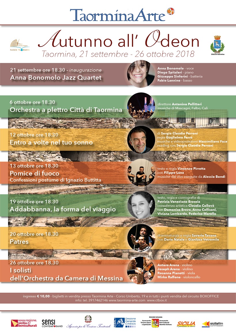 Con il successo della riapertura dell’Odeon Romano a cura della Fondazione Taormina Arte Sicilia prende il via un ricco programma che si svolgerà durante il mese di ottobre. Prende, così, forma il progetto finanziato da Sensi Contemporanei e condiviso dal Parco Archeologico Naxos Taormina, che tende a valorizzare un importante sito archeologico favorendone la sua […]