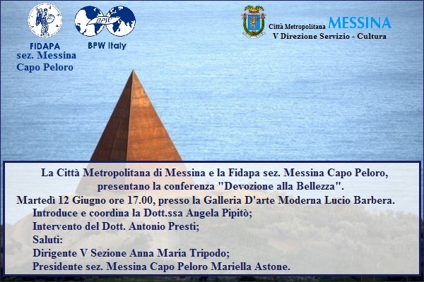 Questo pomeriggio, alle ore 17.00, nei locali della Galleria d’Arte Moderna e Contemporanea avrà luogo la conferenza stampa di Antonio Presti sul tema “Devozione alla Bellezza”. L’evento è stato organizzato dalla V Direzione, Servizio Cultura della Città Metropolitana di Messina e dalla Fidapa, sezione Messina Capo Peloro. All’incontro prenderanno parte gli studenti dell’Istituto “Jaci” impegnati […]