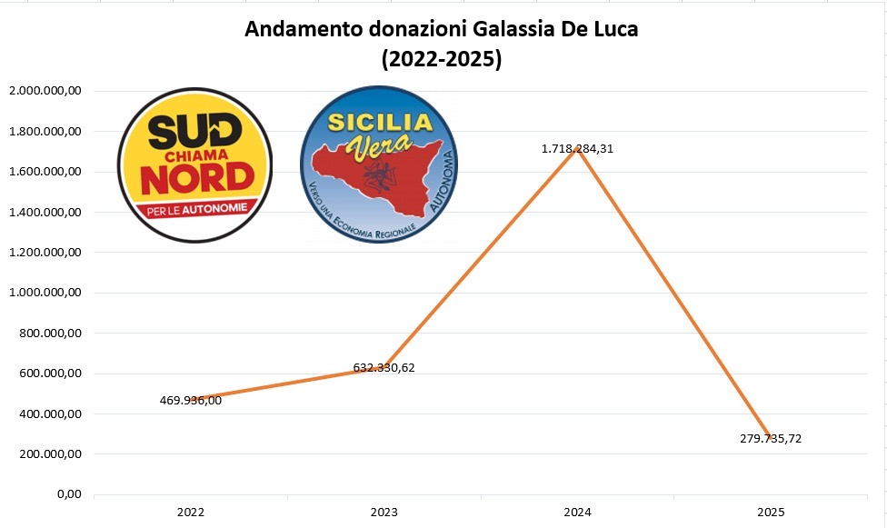 Una cosa è certa, da quando s’è sparsa la notizia dell’inchiesta sulle donazioni ai partiti della “Galassia-De Luca”, s’è registrata una frenata evidente nelle “dazioni liberali” di denaro ai partiti Sud chiama Nord e Sicilia Vera. Il 2025 si deve ancora concludere e, in base ai dati in nostro possesso aggiornati al 31 ottobre scorso, […]