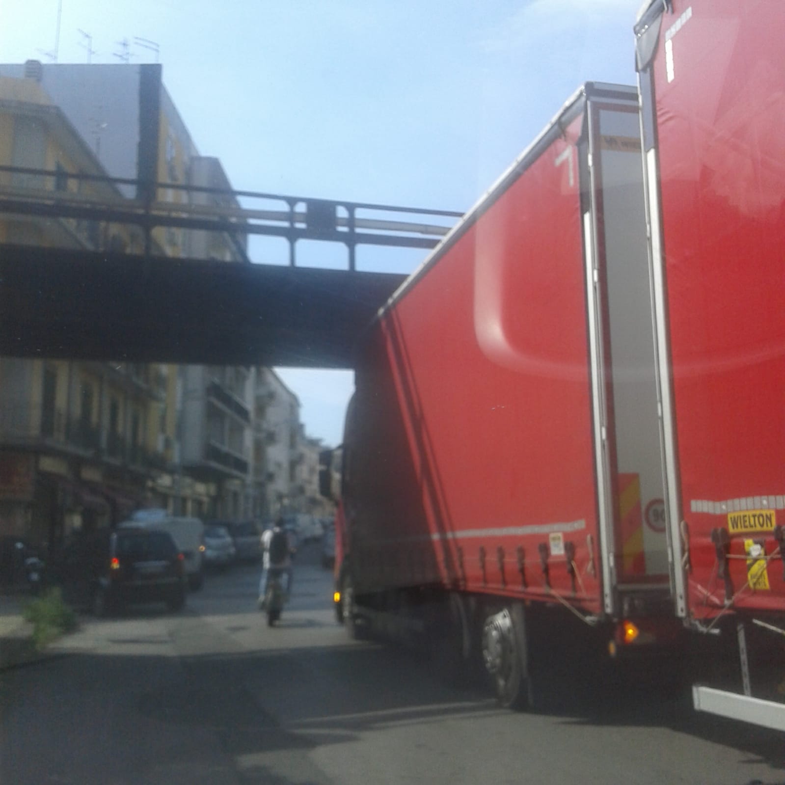 Camion s’incastra, è caos in via Catania