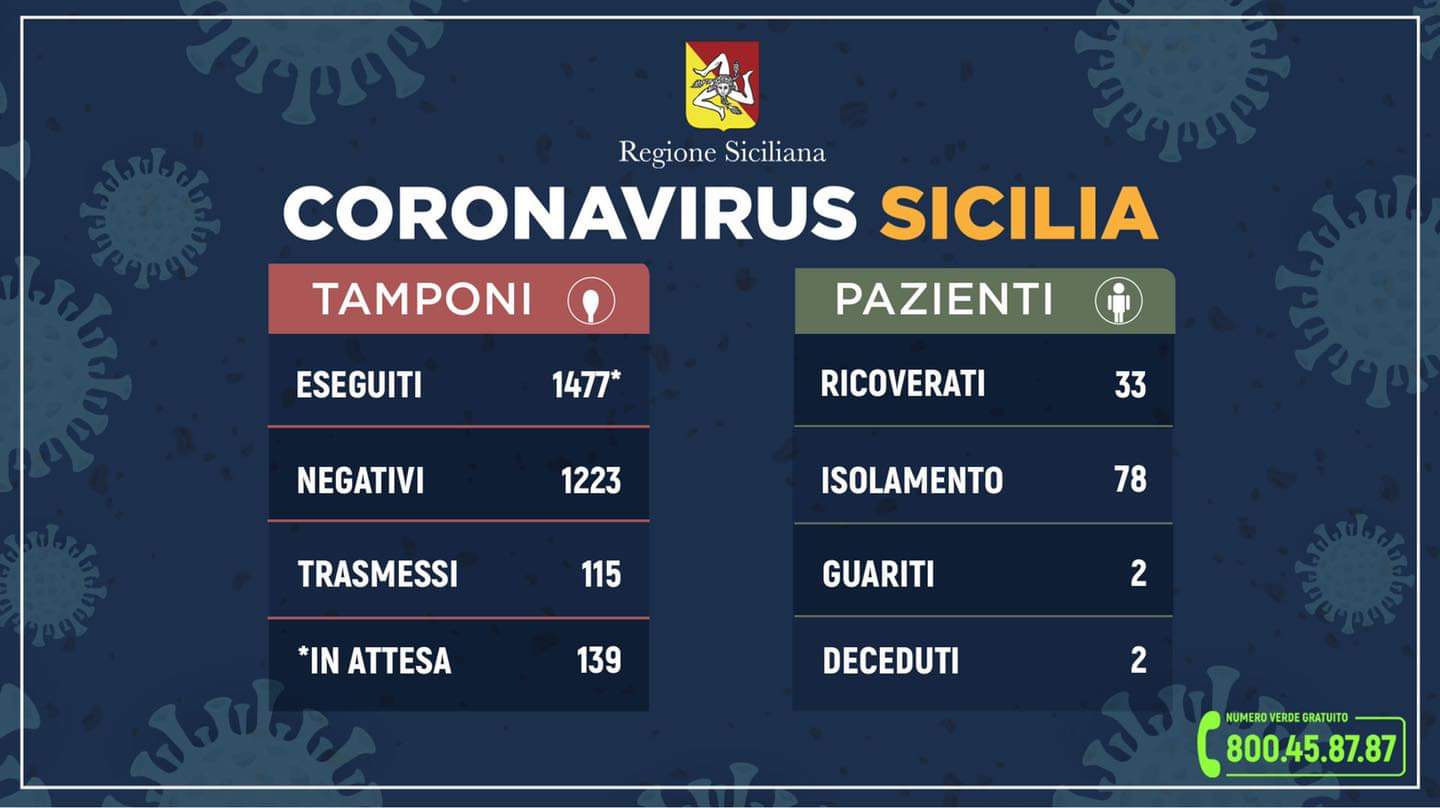 Il Coronavirus fa la seconda vittima in Sicilia ed aumenta considerevolmente il numero dei contagiati. Ecco il dato aggiornato relativo alla Sicilia aggiornato alle 13.30 di oggi. Dall’inizio dei controlli, i laboratori regionali di riferimento (Policlinici di Palermo e Catania) hanno analizzato 1.477 tamponi, di cui 1.223 negativi e 139 in attesa dei risultati. Al […]