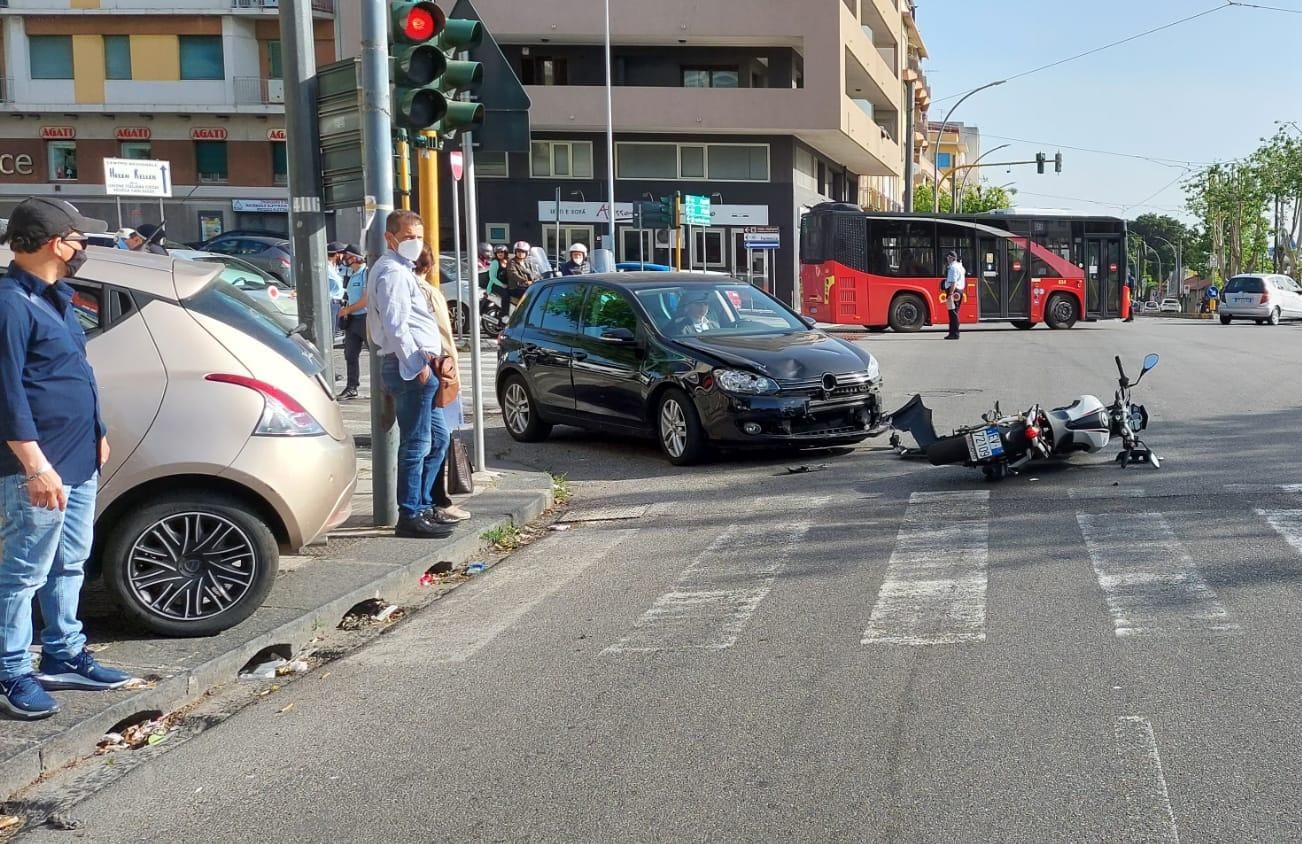 Viale della Libertà, scontro tra auto e moto